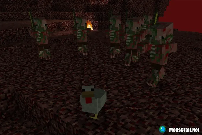 Шанс появления курицы из яйца был увеличен, благодаря чему Вы можете отвлечь курицей мобов Нижнего мира, поскольку многие из ненавидят кур.
