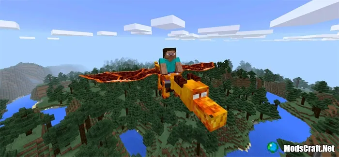 Модификация Dragon Mounts добавляет в мир Minecraft Pocket Edition 7 видов драконов, которых вы можете вырастить с помощью драконьего яйца и приручить их, чтобы в дальнейшем иметь возможность летать на них. Безусловно, это очень крутой мод для Minecraft PE и все драконы выглядят очень потрясающе.