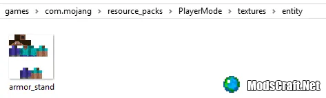 Это действительно легко. После установки мода Вам нужно будет зайти в папку /games/com.mojang/resource_packs/PlayerMode/textures/entity/ и переместить в нее свой скин, а после переименовать файл в armor_stand.png, но перед этим не забудьте удалить старый скин стойки для брони.