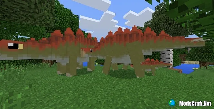 Стегозавр (заменяет корову): живет в большинстве биомов и нейтрален к игрокам, но если Вы начнете атаковать его или его детеныша, то он начнет защищаться.