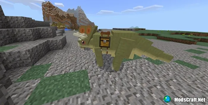 Вы можете легко оседлать трицератопса и ездить на нем верхом. У него также есть специальный сундук, в котором доступно 27 слотов инвентаря!