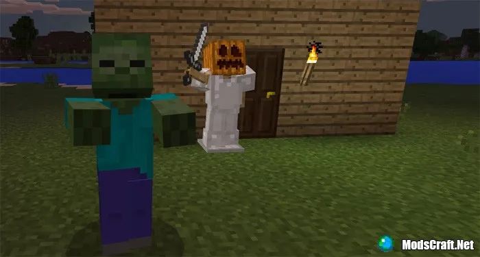 Это небольшое дополнение под названием «Scarecow» добавит в Minecraft Pocket Edition очень полезное нововведение - пугало! Теперь Вы сможете отпугивать монстров от своего домика, а также кроликов, чтобы те не поедали еду с грядок!