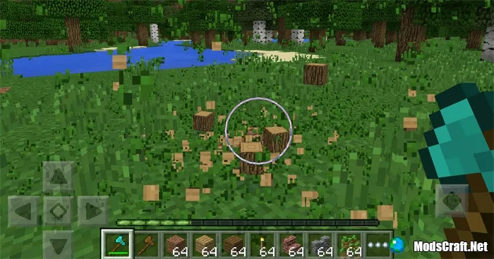 С помощью модификации TreeCapitator для Minecraft Pocket Edition вы сможете рубить сразу всё дерево целиком срубив лишь его нижний блок. (В том числе и листья!).