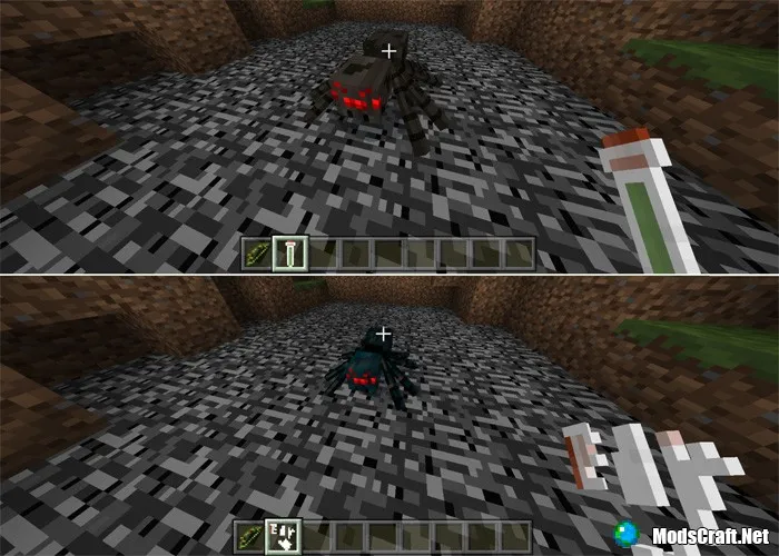 Другой пример взаимодействия с существами заключается в том, что теперь Вы можете превратить обычного паука в пещерного паука с помощью экстракта яда, как показано на скриншоте выше.