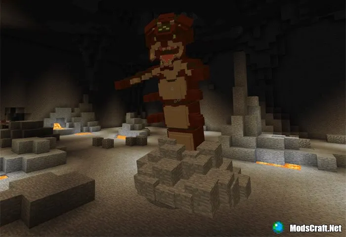 Там Вы найдете Лавового Монстра. Он будет способен поднимать блоки в воздух, а затем бросать их в игрока.