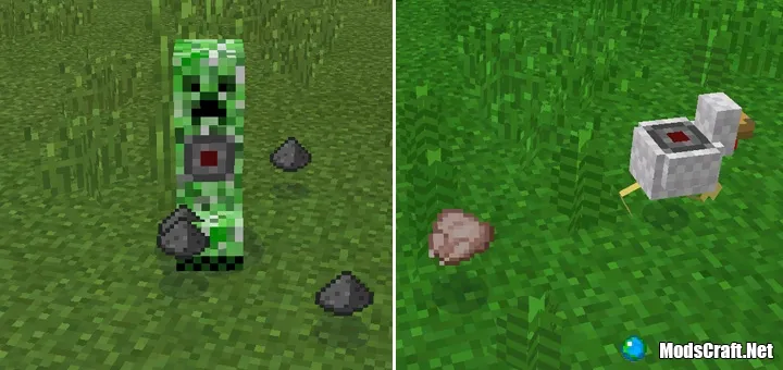 Дроп с мобов отличается и когда вы к ним прикрепите мясорубку, то они умрут. С моба упадёт дроп, а также грязная мясорубка, которую можно очистить путём крафта в верстаке.