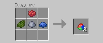 Универсальный метод получения любого мебельного блока в моде «Furnicraft» — это скрафтить специальный предмет, рецепт которого на картинке ниже (1 Глина + 1 Красный краситель + 1 Зелёный краситель + 1 Синий краситель):