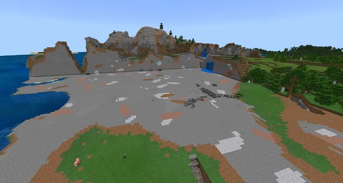 В радиусе 100 блоков все будет заполнено ровной местностью.