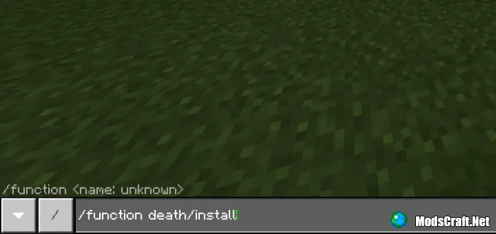 После установки дополнения войдите в мир и введите команду /function death/install. Вставьте /function death/main в появившийся командный блок.