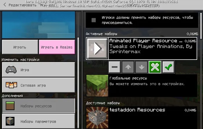 Установка мода Animated Player (.mcpack):