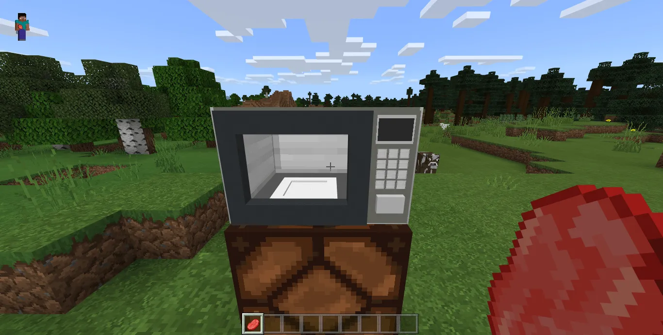 В СВЧ печи можно приготовить сырую говядину. Положите говядину в микроволновку и через 3 секунды у вас получится Жареная говядина, которая заполнит шкалу голода на 3,5.