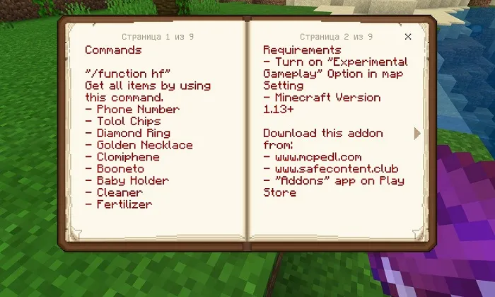 Если хотите быстро получить все новые предметы, то просто введите команду /function hf.