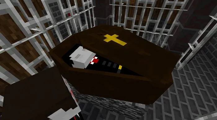 Склеп является домом главного вампира, который в этом моде является боссом! Если вы уничтожите его, то получите ценный ресурс. Помните, что с приходом рассвета вампир превратится в летучую мышь и вы не сможете получить добычу.