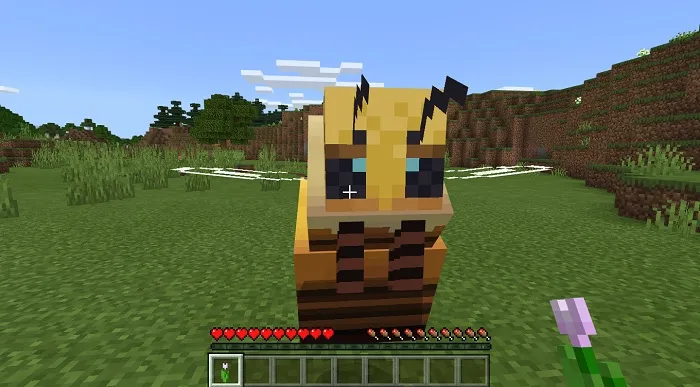 Если держать в руке цветок или бутыль с маточным молочком, то пчела не станет реагировать на вас, спокойно летая возле игрока.