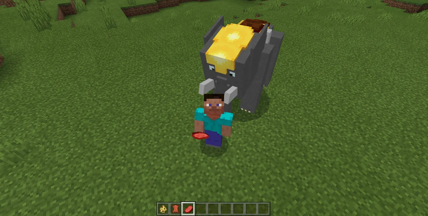 Маленьких слонов нельзя приручить. После приручения слона наденьте на него седло (подойдёт седло для лошади или золотая конская броня).