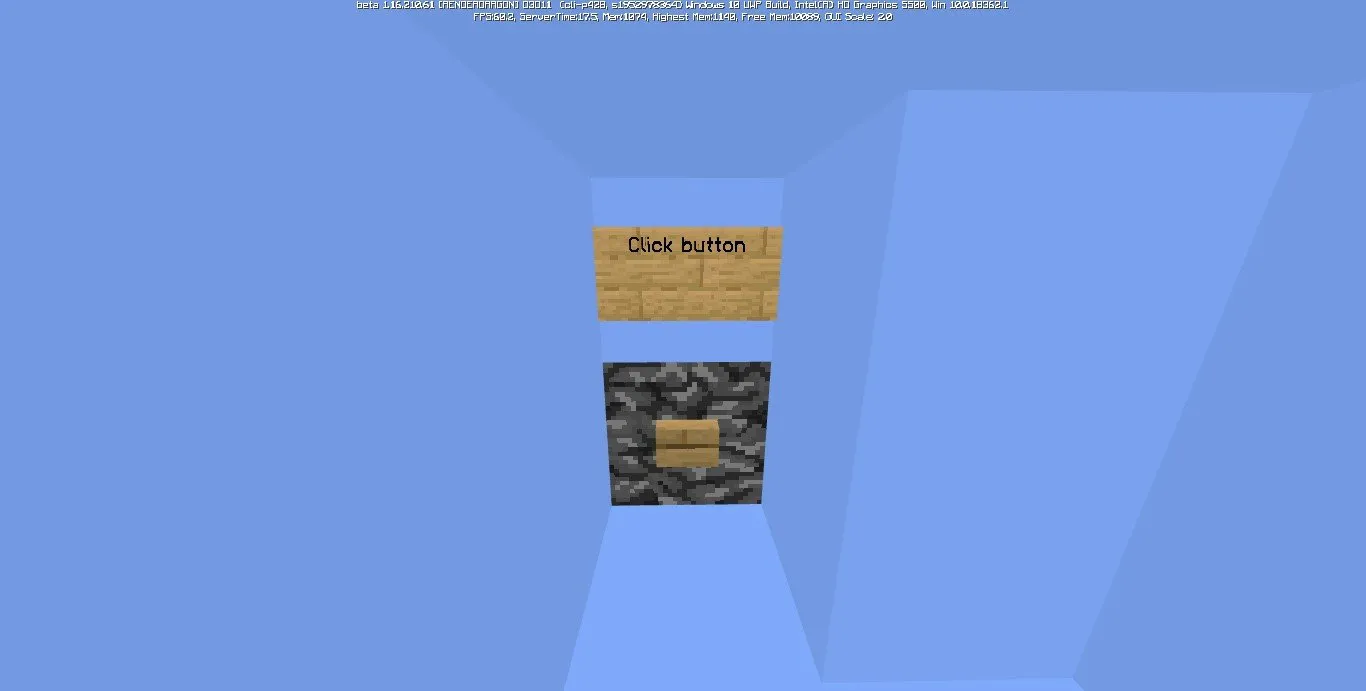 Затем войдите в портал и вы окажетесь в синей комнате с одной кнопкой, нажмите на нее, чтобы переместиться в следующую комнату:
