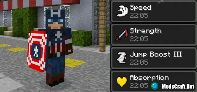 Довольно забавный мод Captain America добавит в ваш мир Minecraft PE одного из популярнейших героев вселенной Marvel - Капитана Америку!