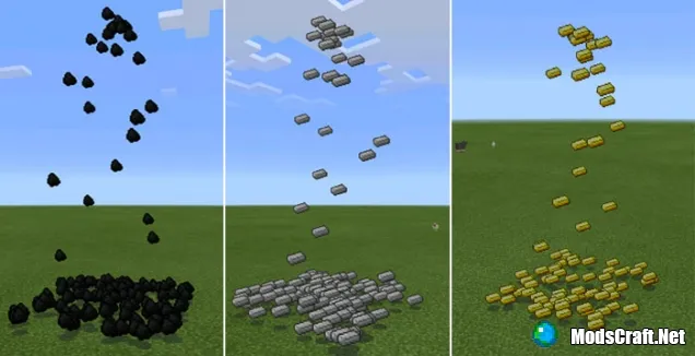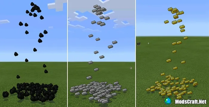 Иногда даже появляется целый фонтан из железных, золотых слитков, или же угля!