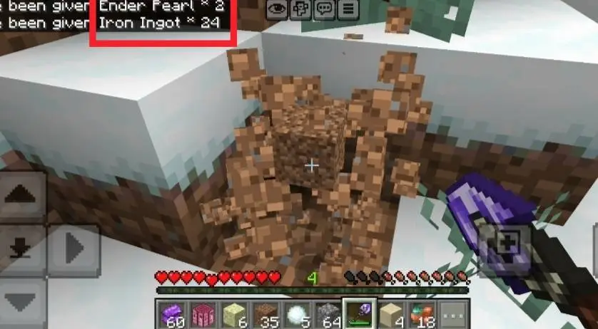 - При добыче блока лопатой Края, вы получите случайные ресурсы.