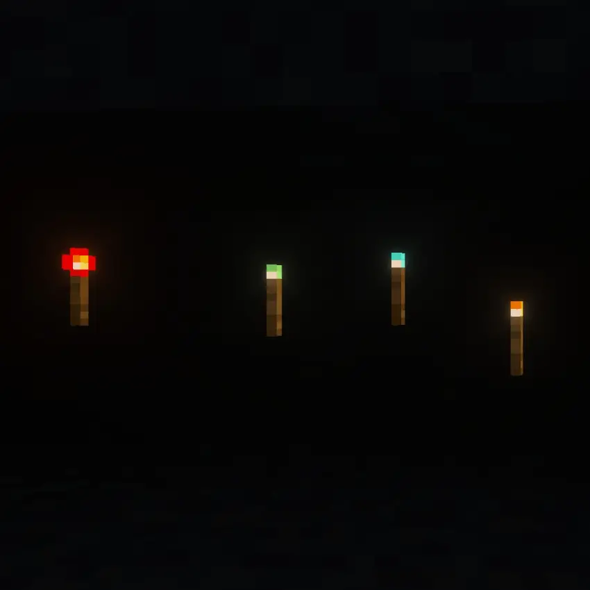 Мод Better Torches добавляет динамическое освещение для всех четырёх типов факелов в Minecraft Bedrock Edition. Факелы теперь светят, когда их держишь в руке, и автоматически перемещаются в левую руку при использовании, не прерывая геймплей.