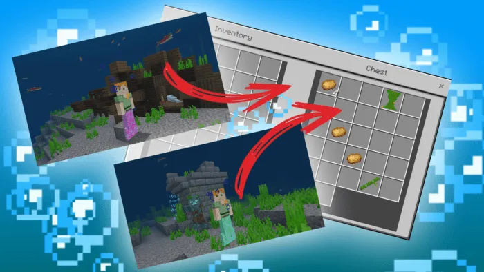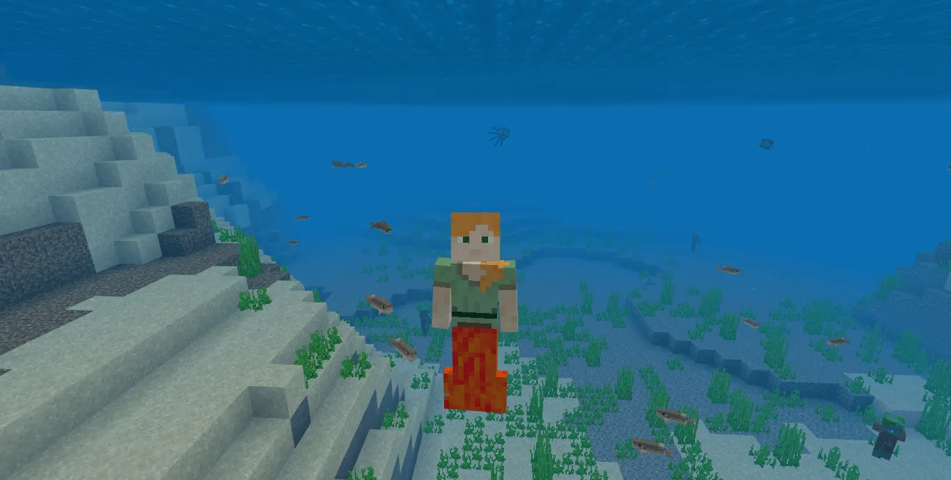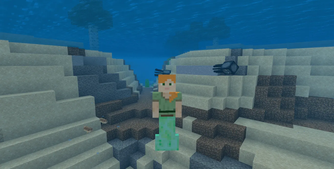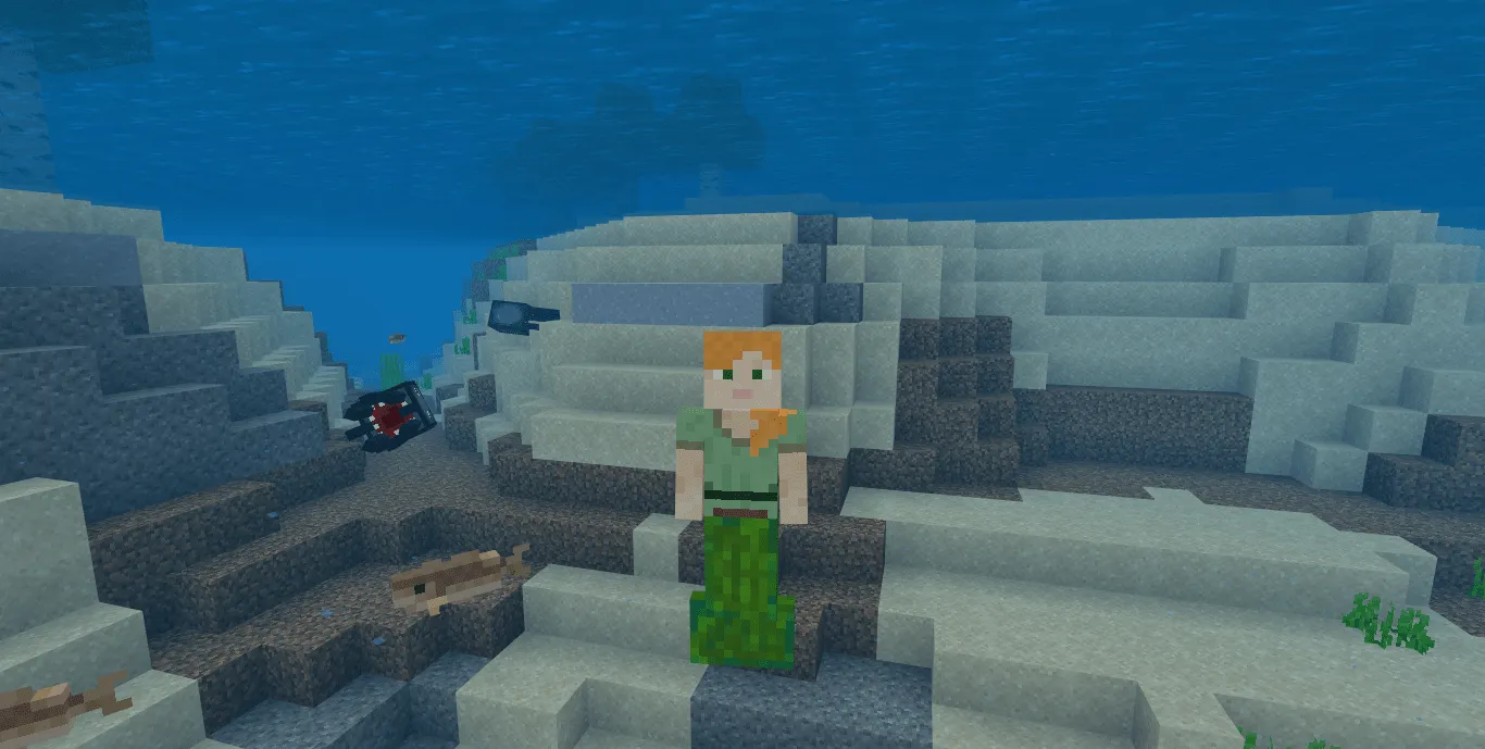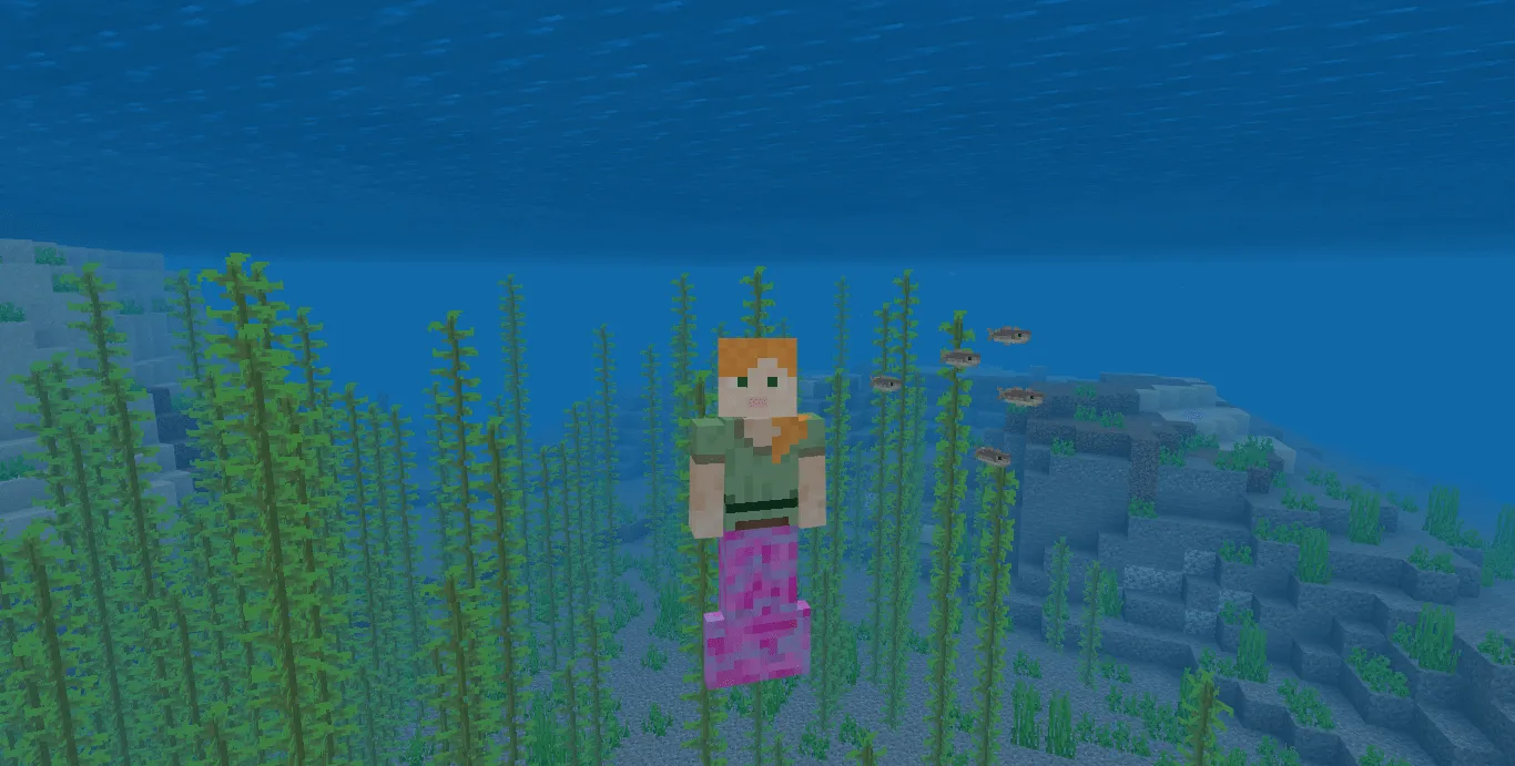 Мод «Хвосты Русалки» добавит в подводный мир Minecraft PE (Bedrock) 5 хвостов Русалки разных цветов: аквамарин, красный, синий, зеленый и розовый. Использования хвоста под водой увеличит скорость плавания в несколько раз!
