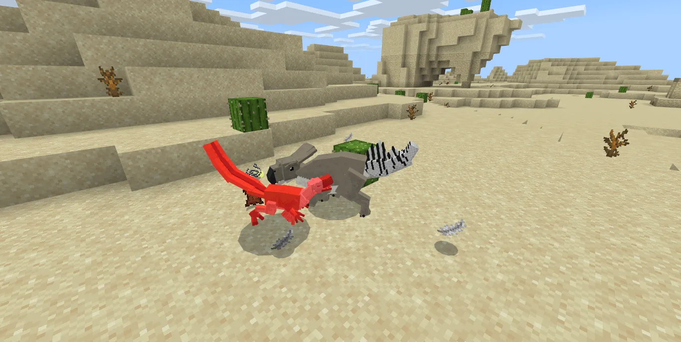 Вместе с модом «Raprots Project» в Майнкрафт Бедрок (ПЕ) вернулась эра динозавров. «Raprots Project» добавит в ваш мир хищников, которых можно приручить, или...они доставят вам кучу проблем, ведь это дикие хищники! С этим модом у вас появится возможность иметь динозавров, которые натурально спавнятся в вашем мире Майнкрафт.