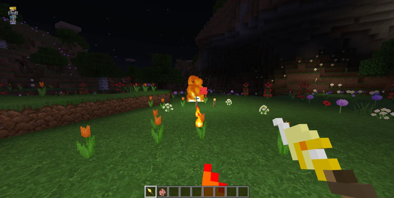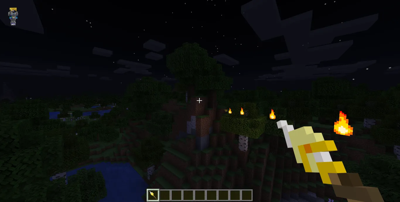 Если во время полета факел попадет в моба, то тот ненадолго загорается.
