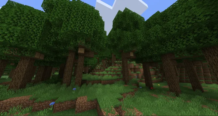 Посмотрите на привычный, но новый мир Майнкрафт, те же деревья, те же биомы, но гораздо ярче. Новые пейзажи, звуки и динамическая листва на деревьях.