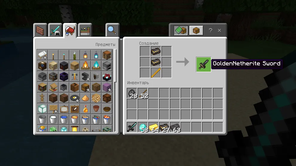 Установка мода Незеритовые мечи (.mcaddon):