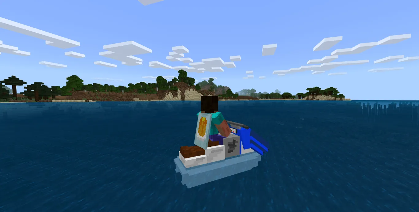 Скоростные лодки! Гидроциклы и катера для всех ваших летних круизов. Больше никакой гребли руками по бескрайним океанам Minecraft. Больше никаких мучений в обычной лодке для славной битвы за Подводную крепость.