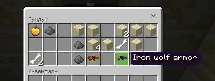 Положите в специальный слот прирученного волка сундук, чтобы открыть 14 слотов для хранения ресурсов.