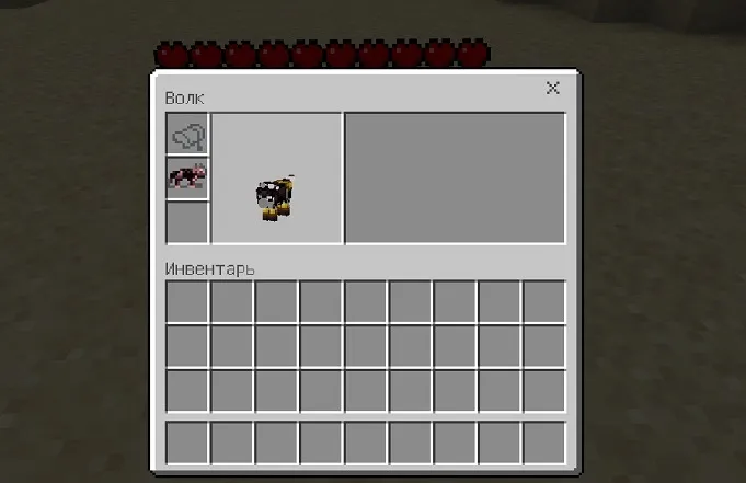 Откройте интерфейс прирученного волка и положите броню в специальный слот.