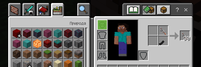 Все рецепты также отображаются в верстаке и оружие можно создавать в режиме выживания.