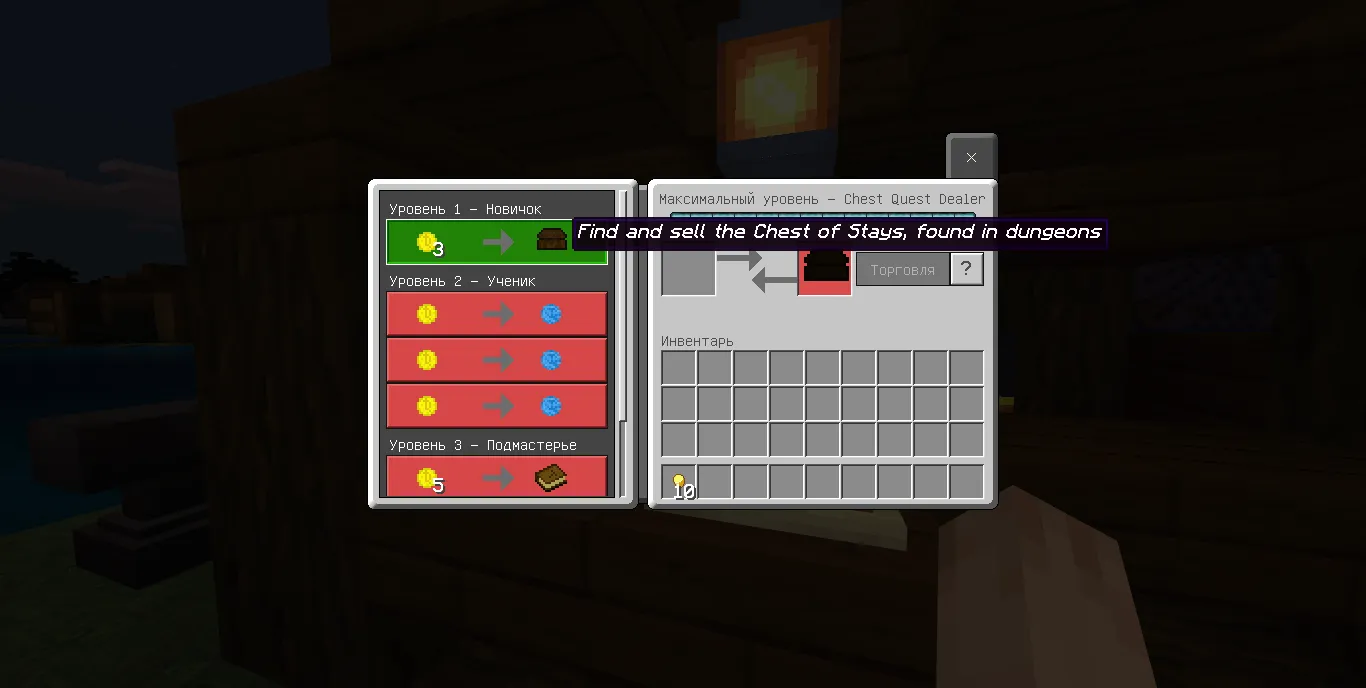 -Квесты торговцев - это еще не все, если вы достаточно смелый, вы можете выполнить квесты сундуков. Эти квесты работают так же, как квесты торговцев, за исключением того, что они требуют от вас найти сундуки и экзотические предметы в Бродячих Подземельях и Пиратских кораблях. Примечание: они также используют разные типы токенов.