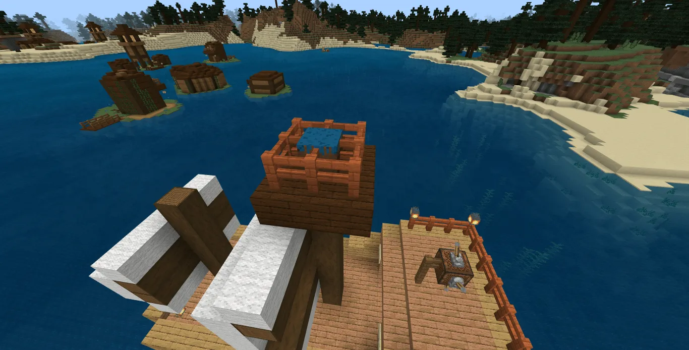 -Для начала отыщите в океанических биомах Пиратские деревни. В Пиратской деревни найдите остров с маяком (не в каждой Пиратской деревне есть маяк, поэтому если вы не нашли остров с маяком, ищите другую деревню пиратов).