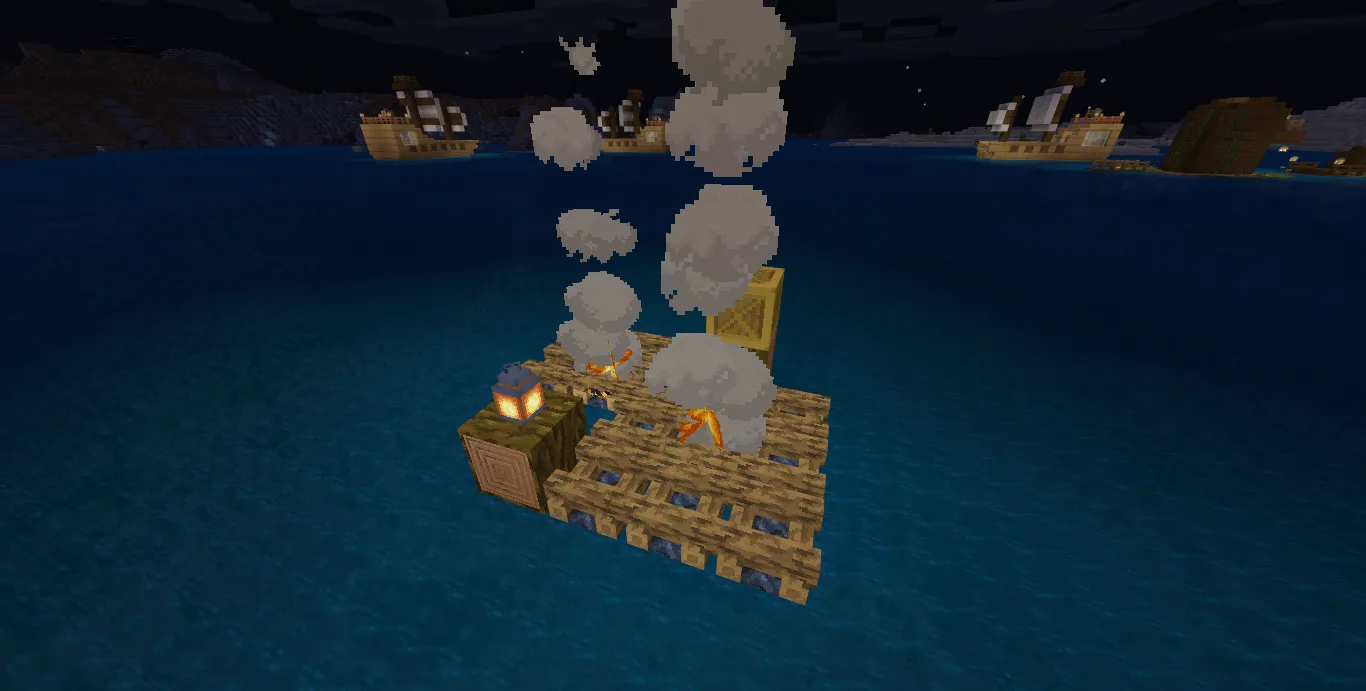 Заброшенный плот, брошенный на откуп океанам. Этот плот содержит набор бесполезных вещей, которые лежат среди кусков коряг вместе с единственным фонарем, обеспечивающим источник света.