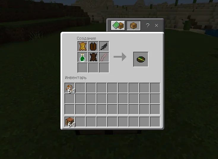 Изготовление: положите 1x мех морской свинки, 1x козье копыто, 1x страусиное перо, 1x змеиный эликсир, 1x мех бизона и 1x рог антилопы в верстак в любом порядке.