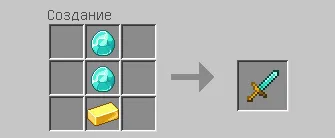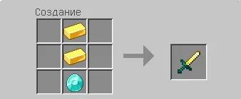 Или поменять местами предметы и получится золотой меч с алмазной ручкой: