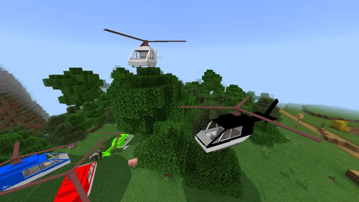 Аддон добавляет 2 летающих аппарата: самолет и вертолет в различных цветах! Легкое управление позволит полностью насладиться видами Minecraft с высоты птичьего полета.