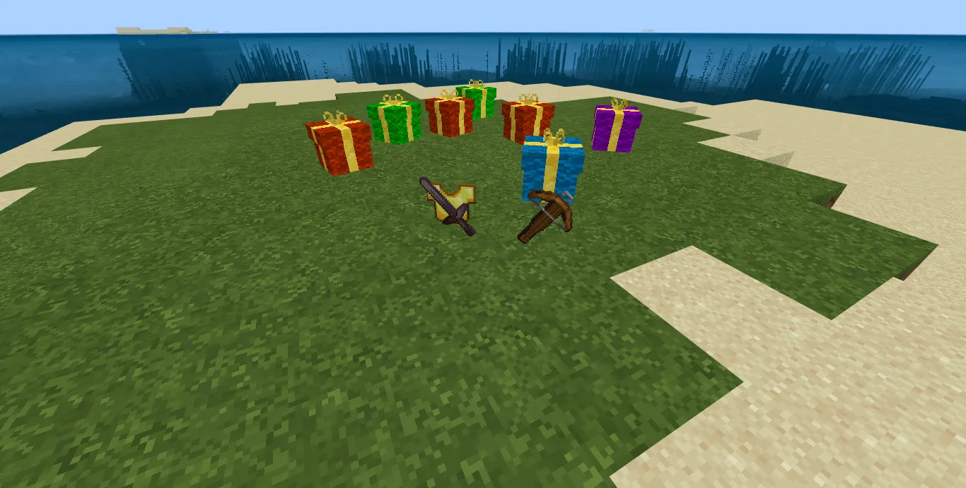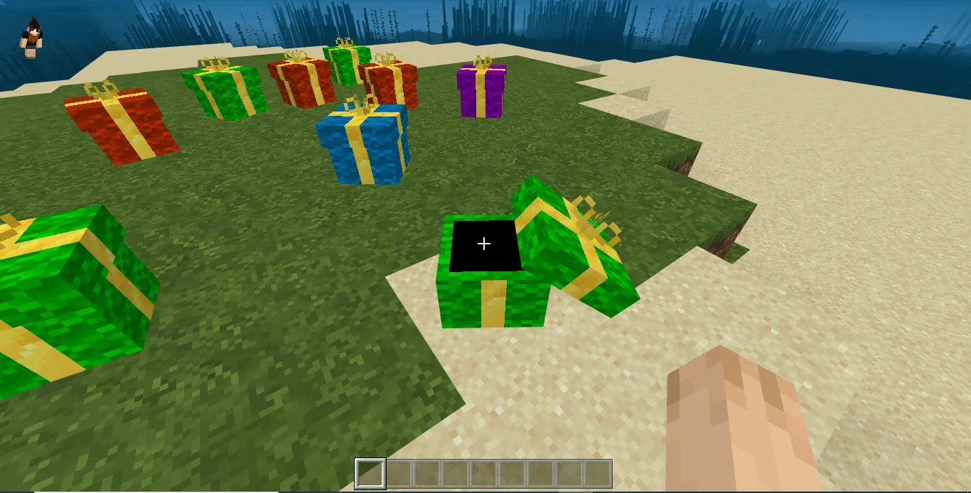 Этот аддон можно использовать как с полным функционалом, так и как украшение. Подарите друзьям что-нибудь приятное. Вы можете положить в подарок любой предмет или блок, уронив его на подарок! Когда вы будете готовы открыть подарок, все, что вам нужно сделать, это пригнуться и нажать правую кнопку мыши, затем подарок откроется, и вы получите свой сюрприз! Вот пример:
