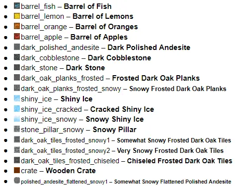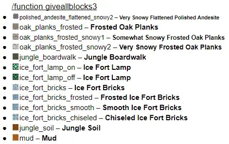 Версия 1.6 добавляет блок под названием Ice Fort Lamp. Изначально предполагалось, что этот блок будет включаться / выключаться при взаимодействии с ним игрока. Однако эта функция доступна только пользователям бета-версии. Поэтому я решил временно удалить эту функцию, пока не будет официально выпущена версия 1.16.100 для всех платформ Bedrock. А пока вы можете поместить лампу Ледяного форта в сетку крафта, чтобы «включить / выключить ее».