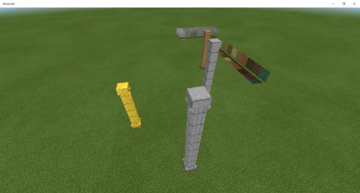 Всего доступно 59 материалов для столбов. Их ориентация основана на вертикальном взгляде игрока.