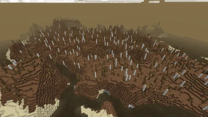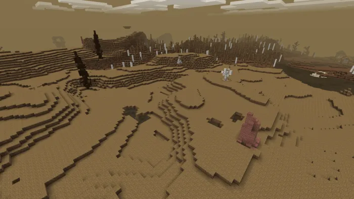 Так же созданы четыре новых биома. Название первого биома Пустоши. Данный биом стал домом для множества нового контента. Тут вы сможете найти много новых мобов, структур и новый блок, который называется мертвая трава.