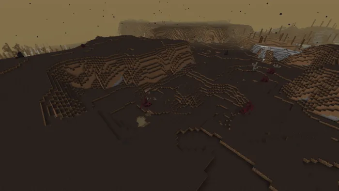 Говоря о капитальной переработке биома, мод перерабатывает существующие биомы, чтобы убрать все листья и заменить траву крупной грязью. Также изменены листва, цвет тумана, цвет воды и даже небо, чтобы придать окружающей среде «мертвый» вид.