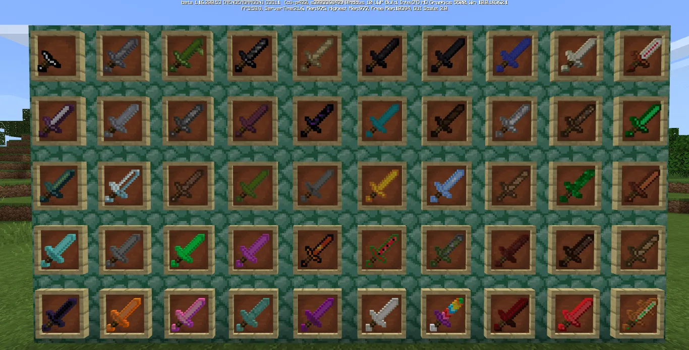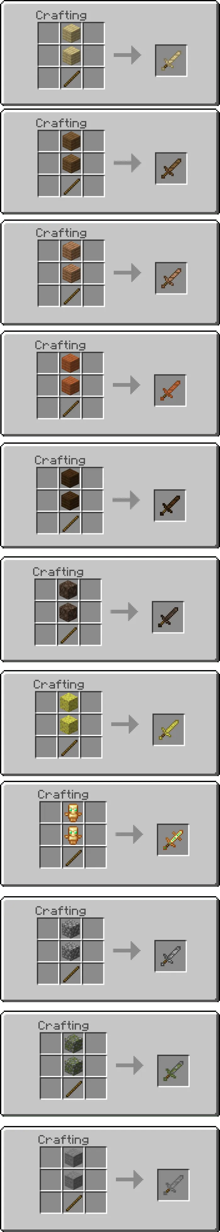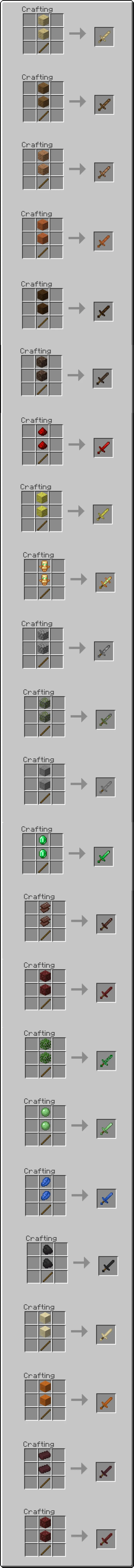 Вот список того, какие мечи вы можете создать, аддон включает в себя следующие мечи: