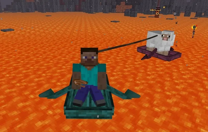 Мод «Nether Boats» добавит в Майнкрафт ПЕ (Бедрок) новые незерские лодки — багровые и искажённые, которые можно скрафтить и использовать для передвижения по лаве!