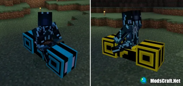 Трон - это название двух научно-фантастических фильмов, где герои транспортируются внутри программного обеспечения. В обоих фильмах герои передвигаются на специальных мотоциклах, которые перенеслись в Minecraft Pocket Edition.