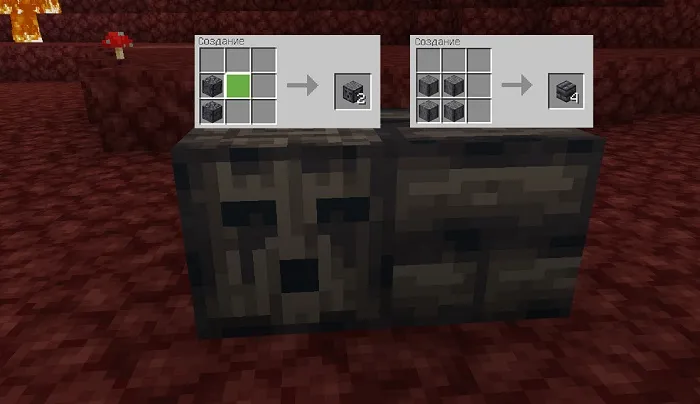 Если вам нравится базальт, то спешим обрадовать, ведь этот мод добавляет несколько новых базальтовых блоков — точёный базальт (Basalt chiseled) и базальтовый кирпич (Basalt brick)!