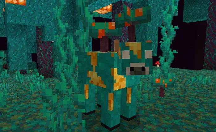 Искажённая корова (Warped fungow) похожа на багровую корову, но с неё нельзя получить рагу. Вместо этого можно использовать пустой пузырёк, чтобы получить новое зелье.