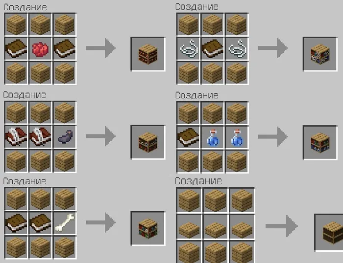 Мод добавляет следующие новые шкафы: